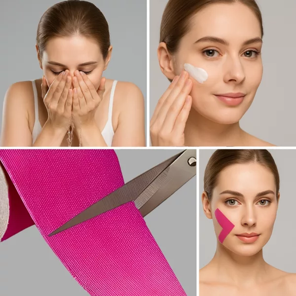 Suavize linhas finas e firme a pele naturalmente com nossa fita de cinesiologia. Você notará uma aparência mais fresca e jovem após apenas algumas utilizações. Você pode aplicá-la antes de dormir ou como parte de sua rotina matinal para resultados melhores. Revele uma pele mais suave e aumente sua confiança!
