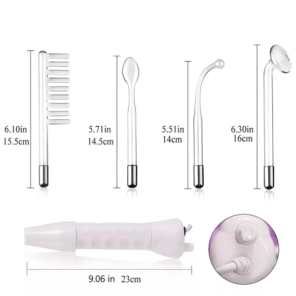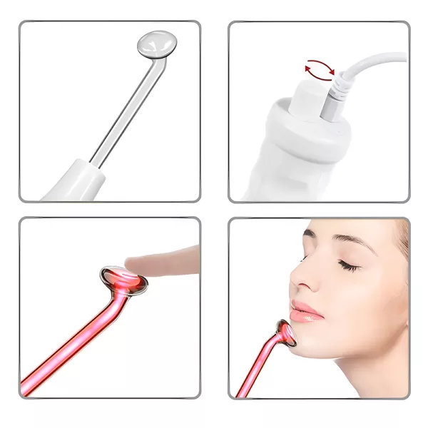 Esta varinha de alta frequência aumenta a circulação para dar ao seu rosto um brilho saudável. Reduz visivelmente as linhas finas e firma áreas flácidas. É fácil de usar em casa e oferece resultados como os de um spa.