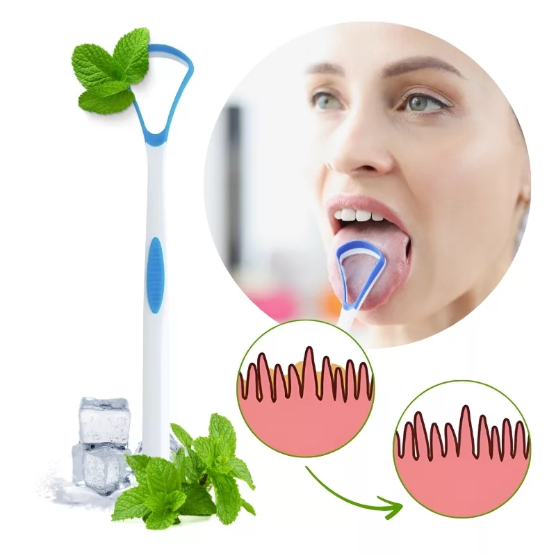 Nosso limpador de língua pode alcançar todas as áreas facilmente, garantindo que nenhum ponto seja perdido.