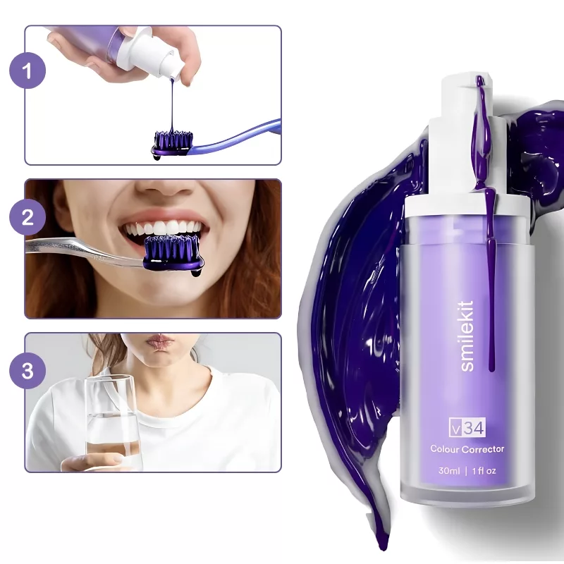 Alcance um sorriso visivelmente mais branco após apenas alguns usos do nosso creme dental roxo. Ele ajuda a neutralizar tons de amarelo sem produtos químicos agressivos. É seguro para o esmalte, tornando-o adequado para uso diário.