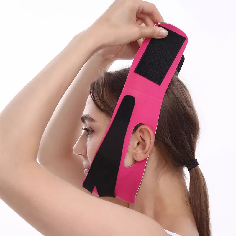 A faixa para o queixo envolve meu rosto perfeitamente. Não escorrega durante o descanso noturno. Minha pele está mais firme!